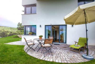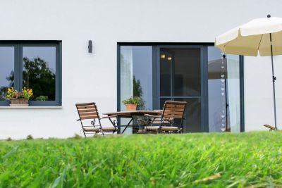 Wunderschöne, helle Wohnung im Erdgeschoss des 2014 erbauten Wohnhauses mit Schlafzimmer, Bad mit Dusche und WC, geräumigem Wohn-Esszimmer, komfortabel ausgestatteter Küche (mit Geschirrspüler) und Freisitz. Hier können Sie Ihre Traumzeit ganz in Ruhe beim Sonnenbaden oder im schönen Licht der untergehenden Sonne genießen.